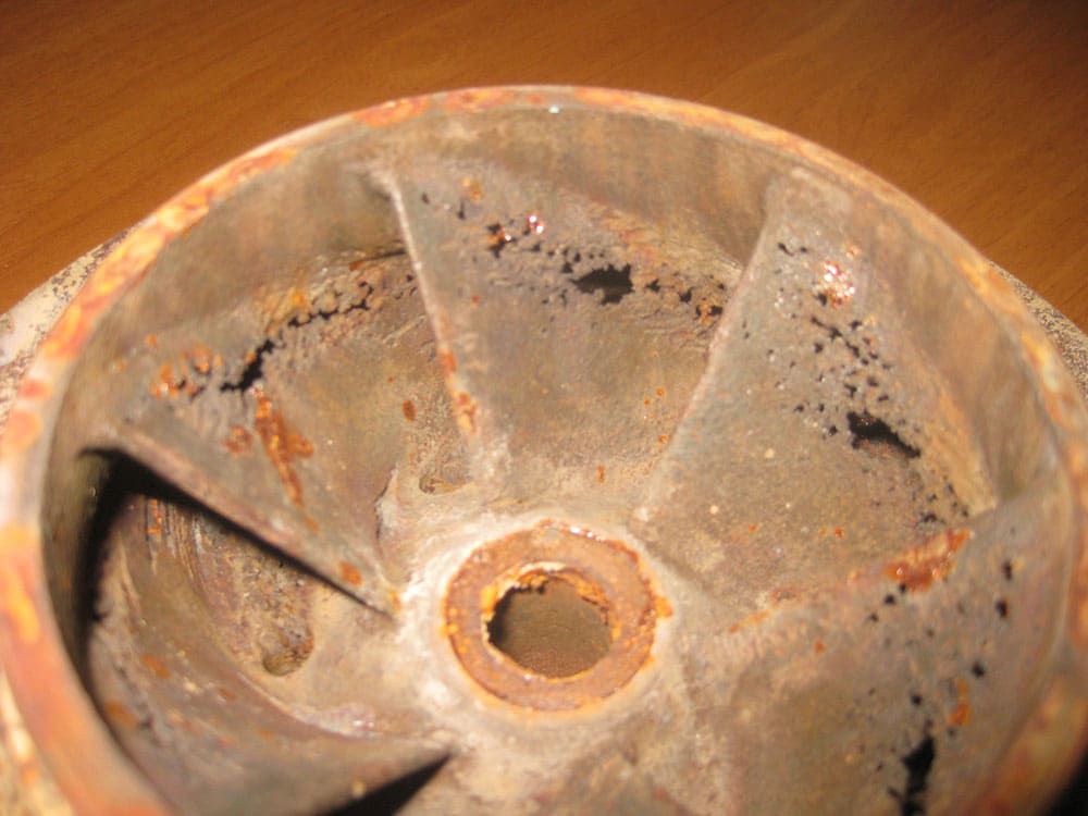 - Износ элементов насоса - эрозия поверхностей, увеличение зазоров. Это нарушает равномерность потока и создает условия для кавитации.