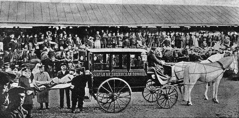 Медицинская помощь прибыла туда только через четыре часа, и, как писали современники, «делать было нечего, кроме как руководить развозкой тел». Ходынская трагедия явилась ярким доказательством отсутствия в Росси системы оказания экстренной медицинской помощи и показала необходимость создания в стране службы скорой помощи.