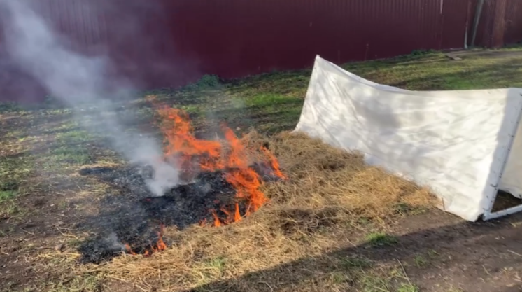 Принцип работы такого устройства заключается в ограничении распространения горения сухой травянистой растительности по направлению движения пожара. Проведенные испытания показали, что данное устройство успешно справляется с задачей сдерживания и предотвращения распространения огня в условиях ландшафтных пожаров.