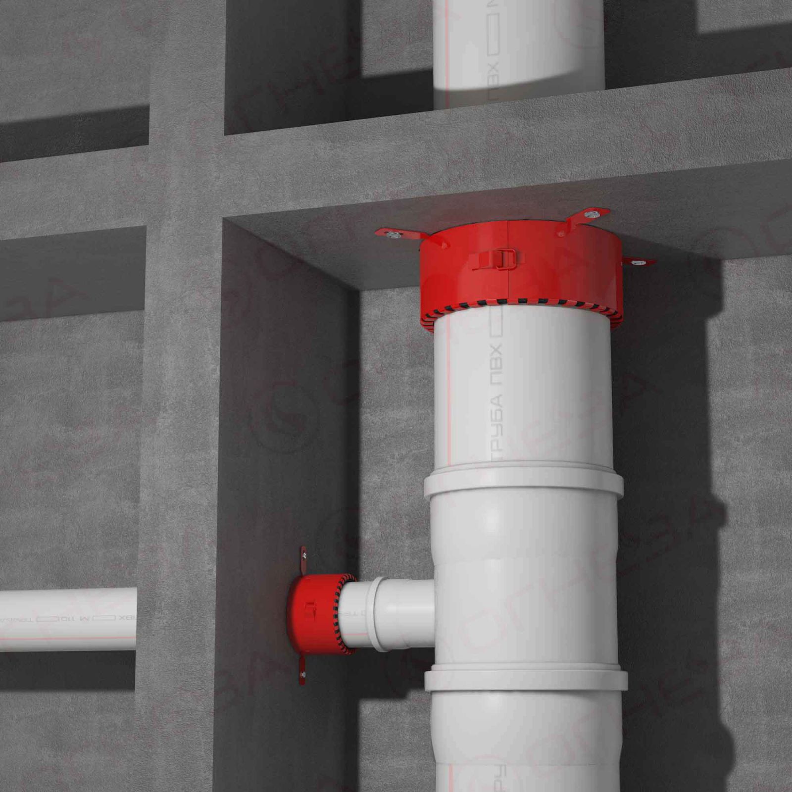 Противопожарная муфта (противопожарная манжета) ОГНЕЗА ПМ устанавливается в местах прохода труб из поливинилхлорида, полиэтилена, полипропилена сквозь перегородки и межэтажные перекрытия. Благодаря разъемному корпусу и надежному замку-защелке наша муфта легко монтируется и демонтируется