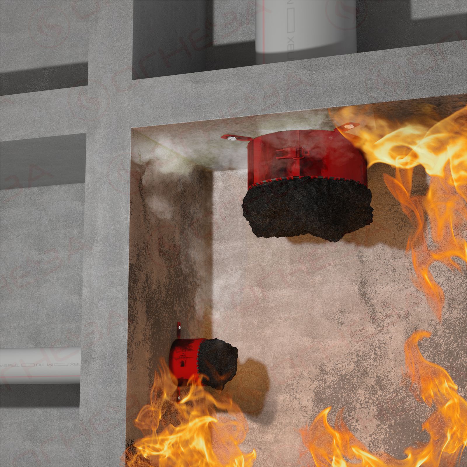 В случае возникновения пожара, под действием высоких температур, муфта срабатывает и перекрывает отверстие в перекрытии (стене) с нормированной степенью огнестойкости до EI-240, резко уменьшая вероятность распространения пожара на соседнее помещение. Муфта работоспособна при монтаже на вертикальные и горизонтальные трубопроводы.