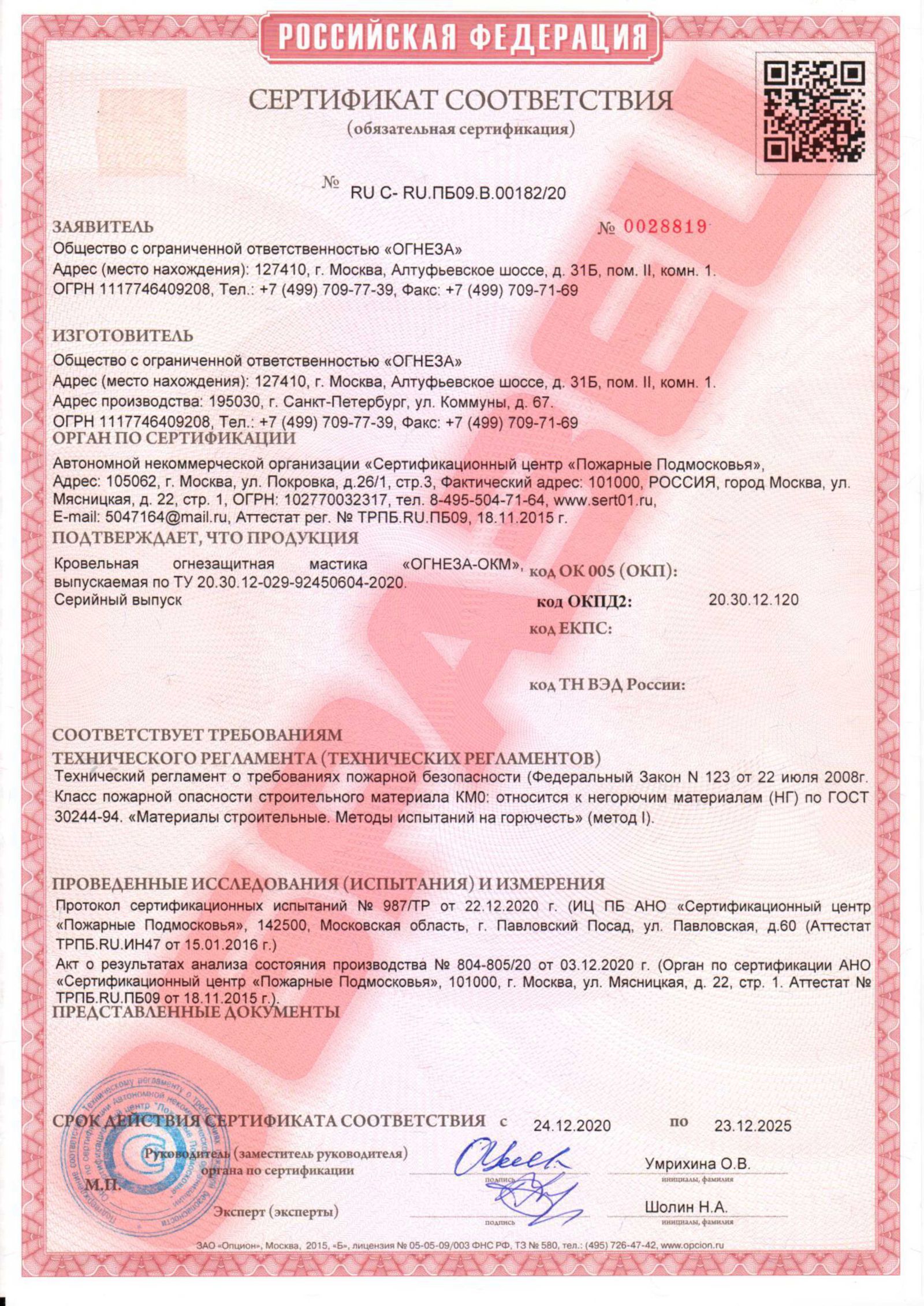 Негорючая краска для путей эвакуации ОГНЕЗА КМ0