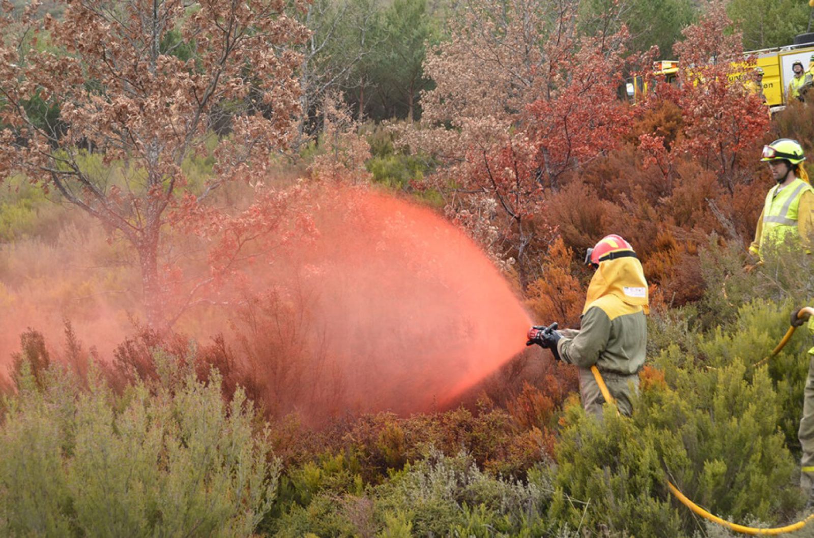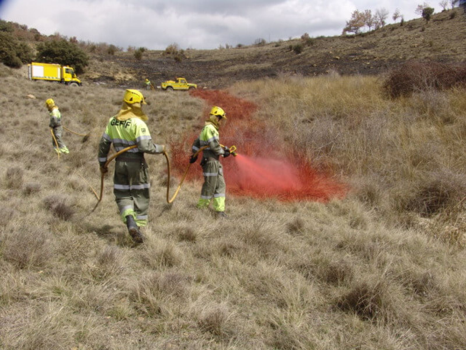 Наземное применение — очень эффективный способ создания химических заградительных полос. Пламязамедлитель используется для предотвращения поджогов, для профилактической обработки (жилые территории, полосы отвода железных дорог), для безопасного противодействия пожару, для создания химических барьеров, поддерживающих существующие линии противопожарной защиты (дороги, и пр.).