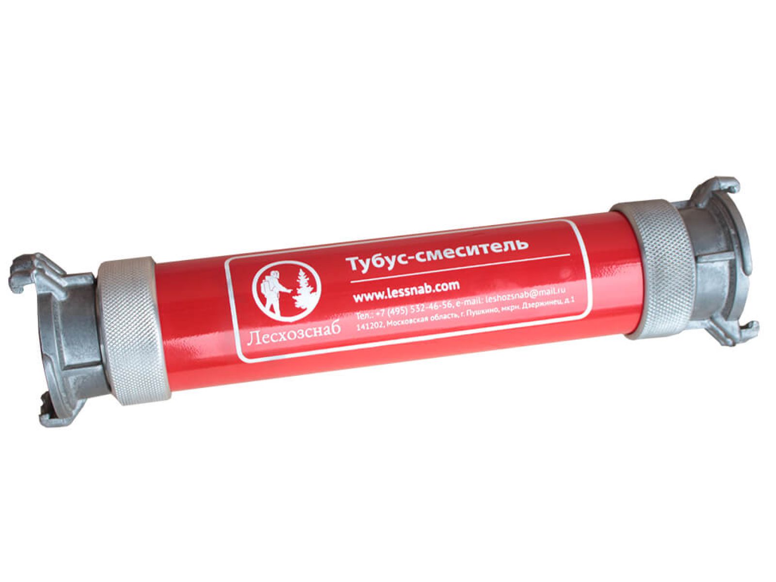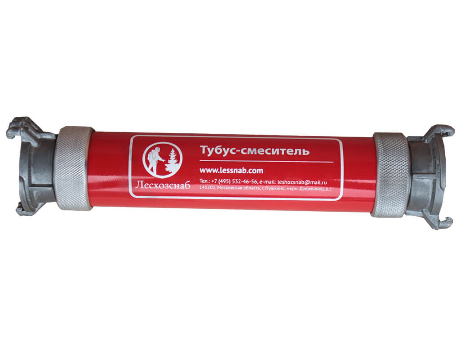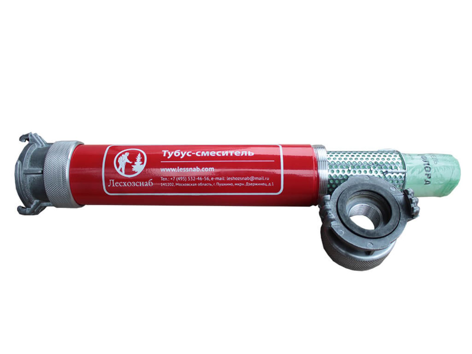 Конструкция смесительного устройства состоит из дюралевого тубуса с двумя гайками на концах, служащими для подсоединения к стандартным головкам пожарных рукавов.