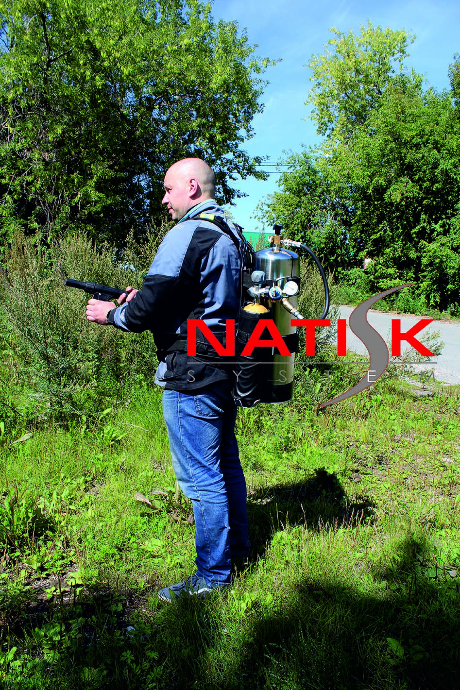 Установка пожаротушения NATISK 12 BL - это переносное устройство массой от 25 кг, опционально комплектуемое несущей спинкой и индивидуальной дыхательной системой. Обеспечивает дальность подачи до 15 метров. Объём производимой пены до 130 л.