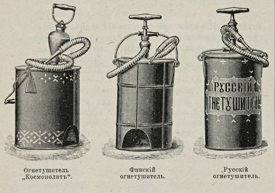 7 февраля 1863 года американским инженером Аланом Крейем было запатентовано устройство для тушения пожара, которое максимально схоже с современными огнетушителями. Но впервые устройство для тушения пожара, которое также можно отнести к виду огнетушителей, было опробовано в начале 17 века в Германии. Изобретатель Захария Грейл предложил тушить пожар водой, находящейся в герметичной бочке, которая бросалась в огонь и разрушаясь заливала очаг. Разрушение бочки происходило за счет взрыва небольшого количества пороха, который поджигался запалом перед помещением бочки в очаг пожара. Впоследствии различные устройства для тушения огня предлагались в Англии химиком Амброузом Годфри, в Германии врачом Фушесом, английским изобретателем Джорджем Мэнби, немецким инженером Хайнрихом Готлибом Кюном и другими изобретателями. Российские инженеры внесли неоценимый вклад в совершенствование устройств для тушения пожара, например, изобретатель Наум Шефталь в конце 19 века создал первый порошковый огнетушитель «Пожарогаз», а инженер-химик Александр Лоран разработал в 1906 году рецептуру пены для тушения пожара и изобрел пенный огнетушитель.
