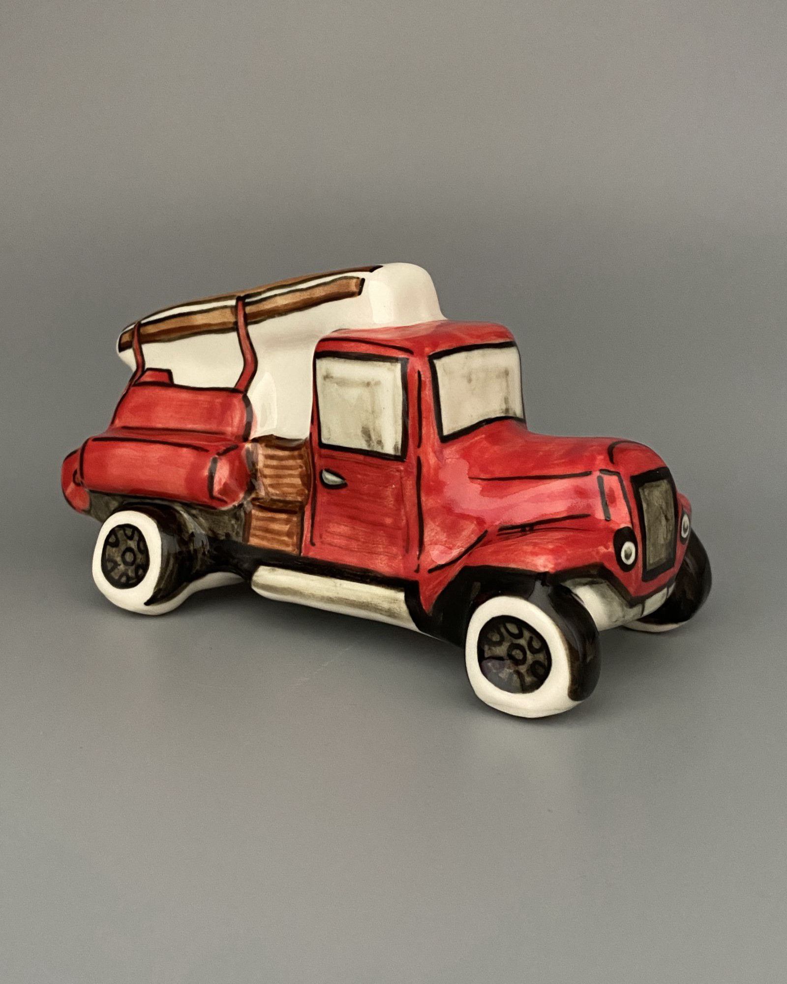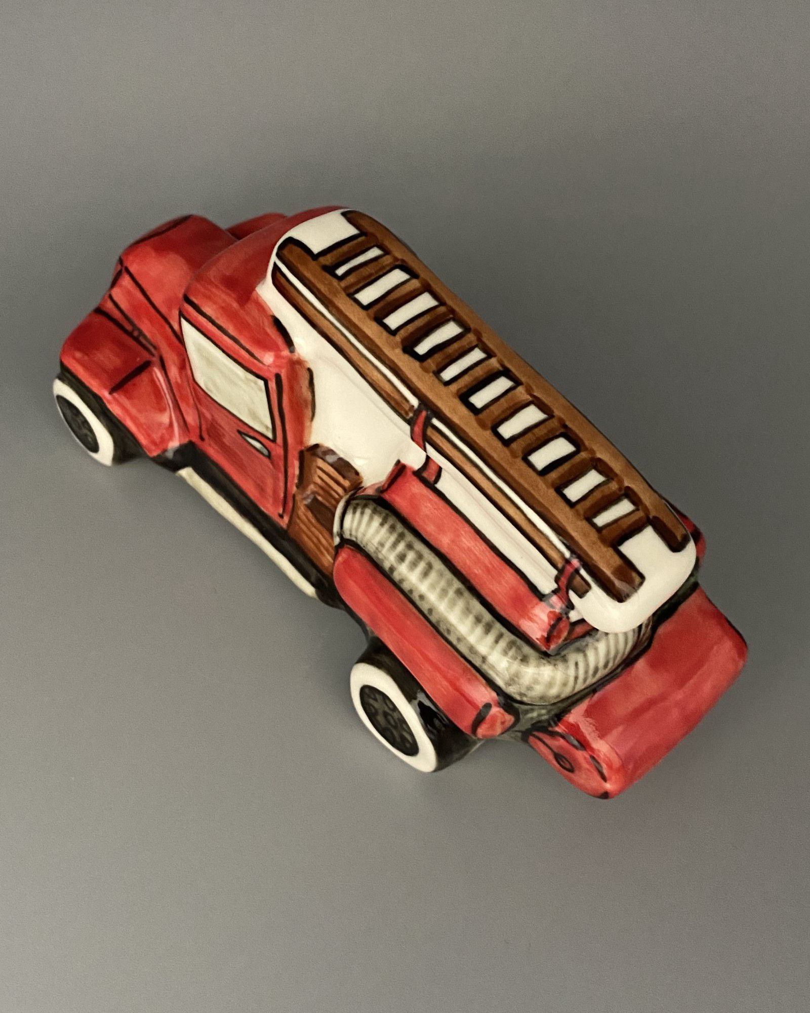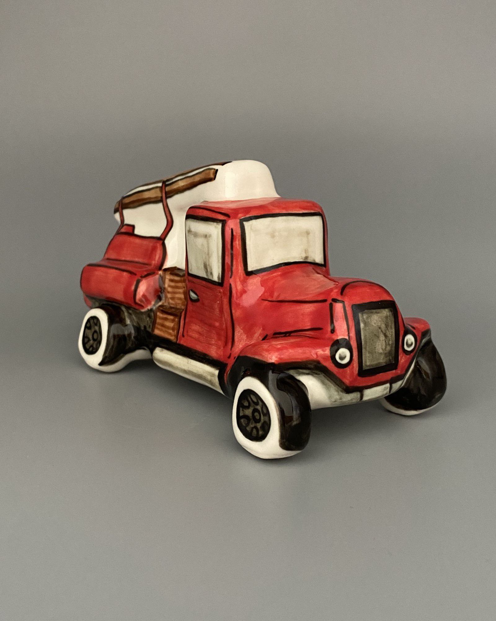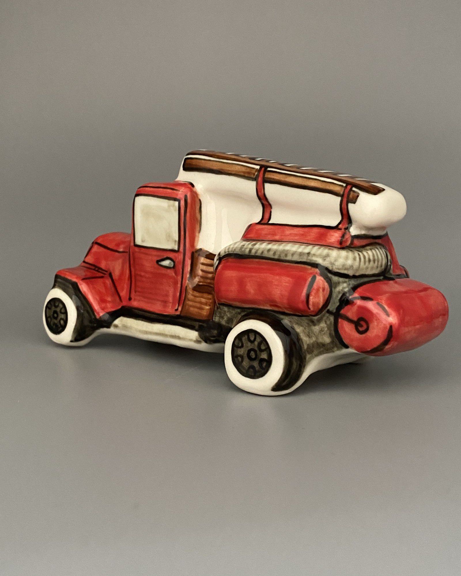 Фарфоровая скульптура для интерьера «Пожарная машина» с ручной авторской росписью - это уникальное и оригинальное изделие, которое станет прекрасным подарком на профессиональные праздники для сотрудников МЧС, спасателей и пожарных.