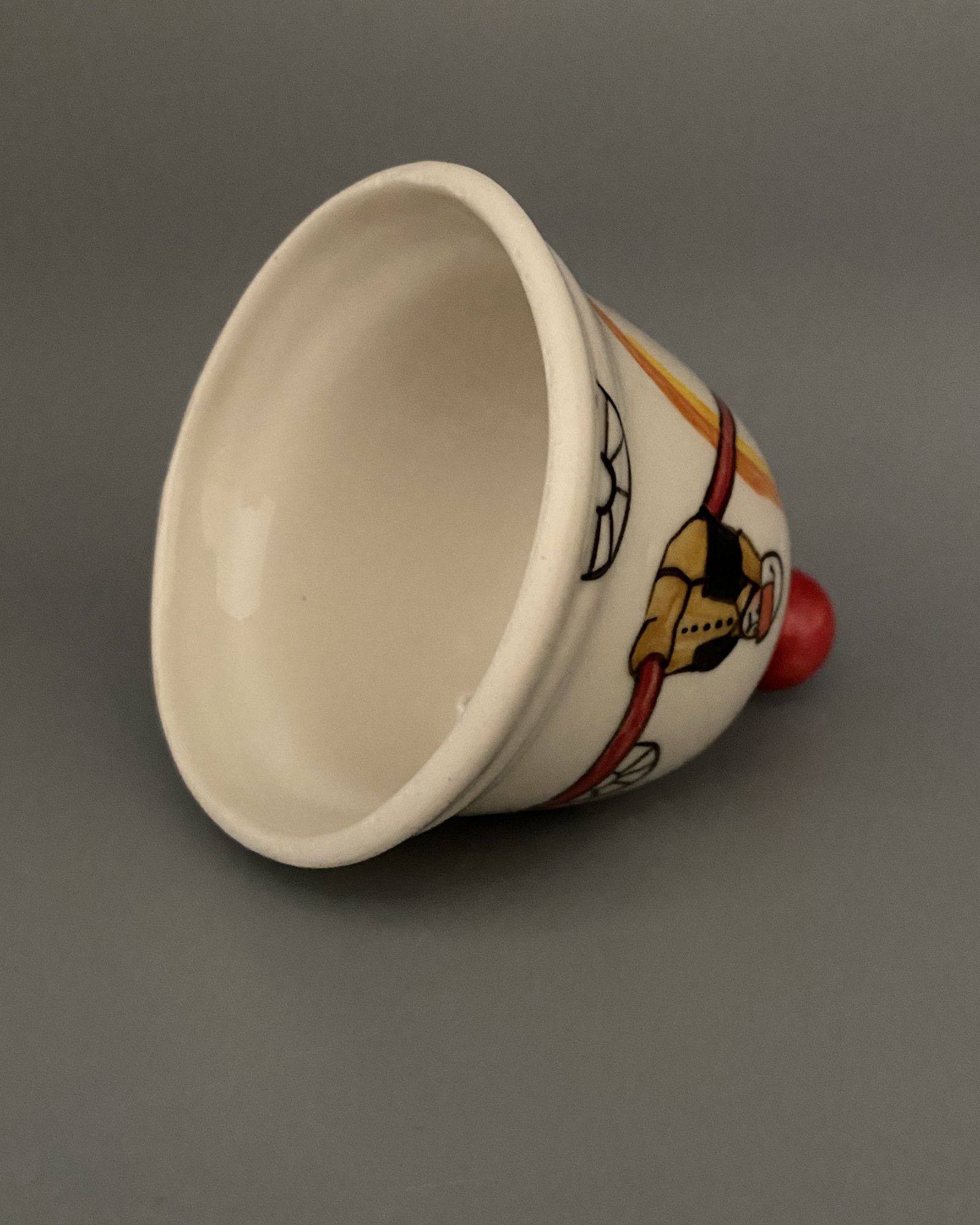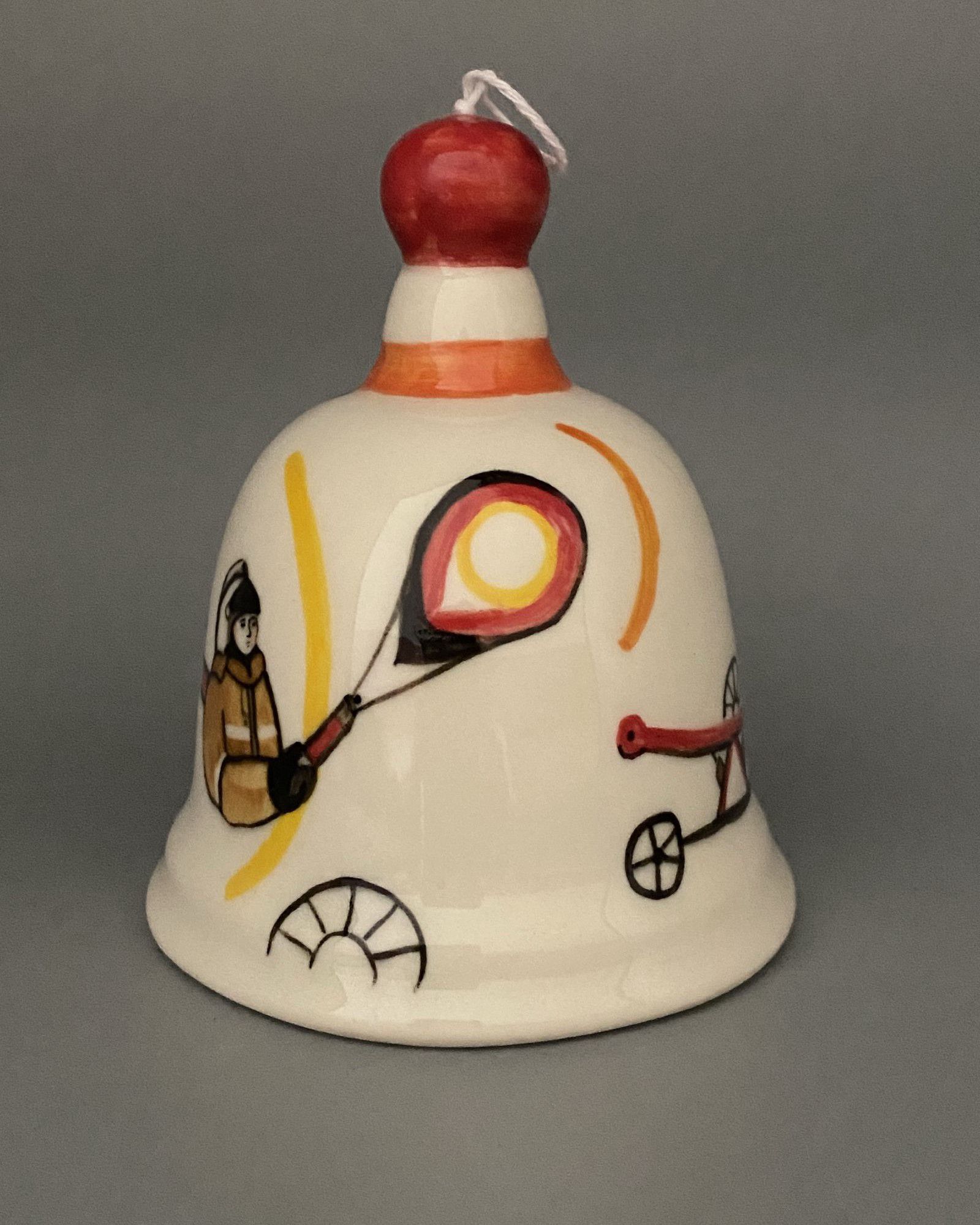 Дизайнерский, тематический колокольчик "Пожарная династия" - представляет собой уникальный подарок, который отличается своей оригинальностью и качеством исполнения. Это авторская работа, изготовленная и расписанная вручную мастерицей фабрики с использованием фарфорового шликера, специальных форм, подглазурной росписи. Каждая деталь и элемент на колокольчике проработаны с большой тщательностью и вниманием к деталям, что делает его поистине уникальным.