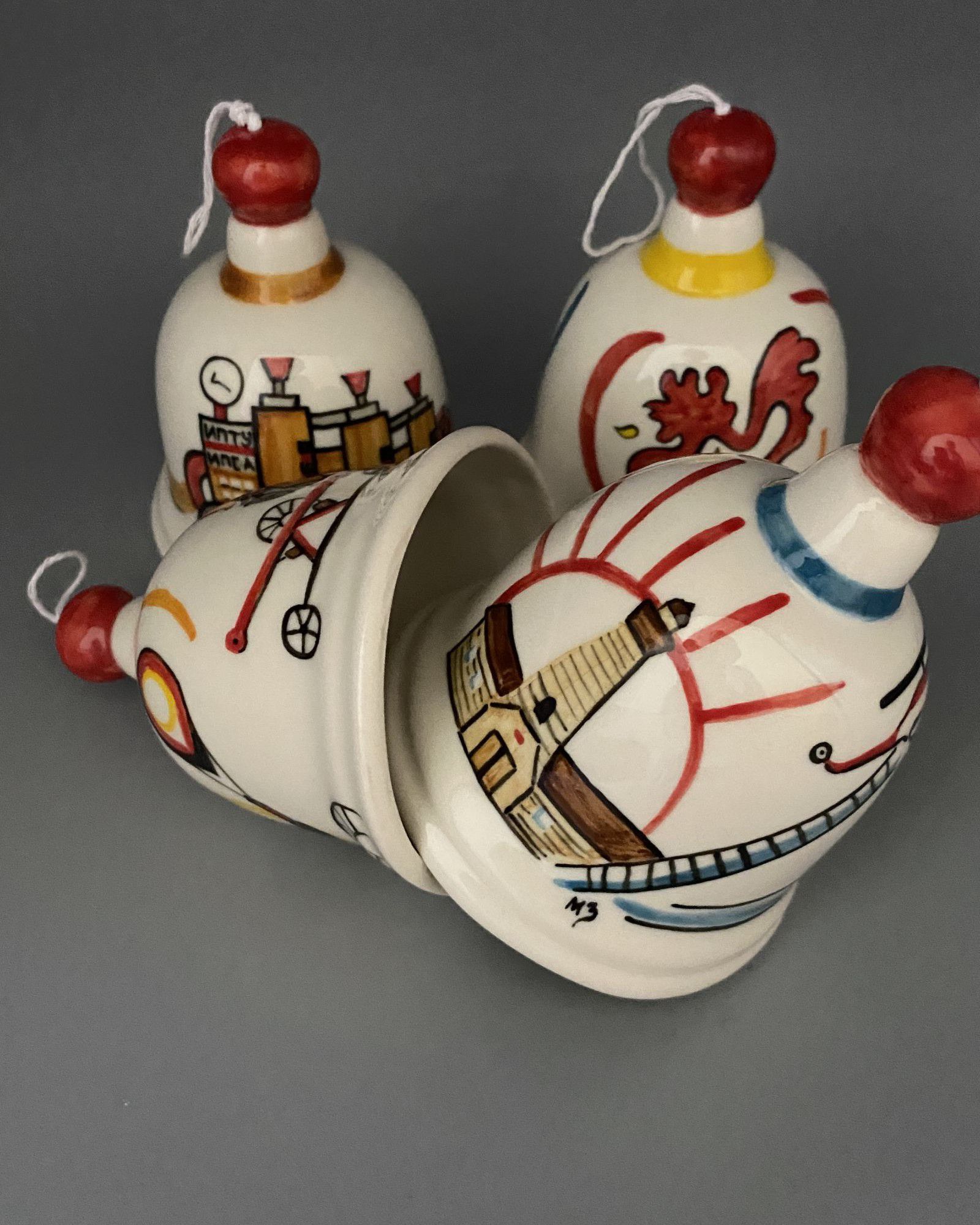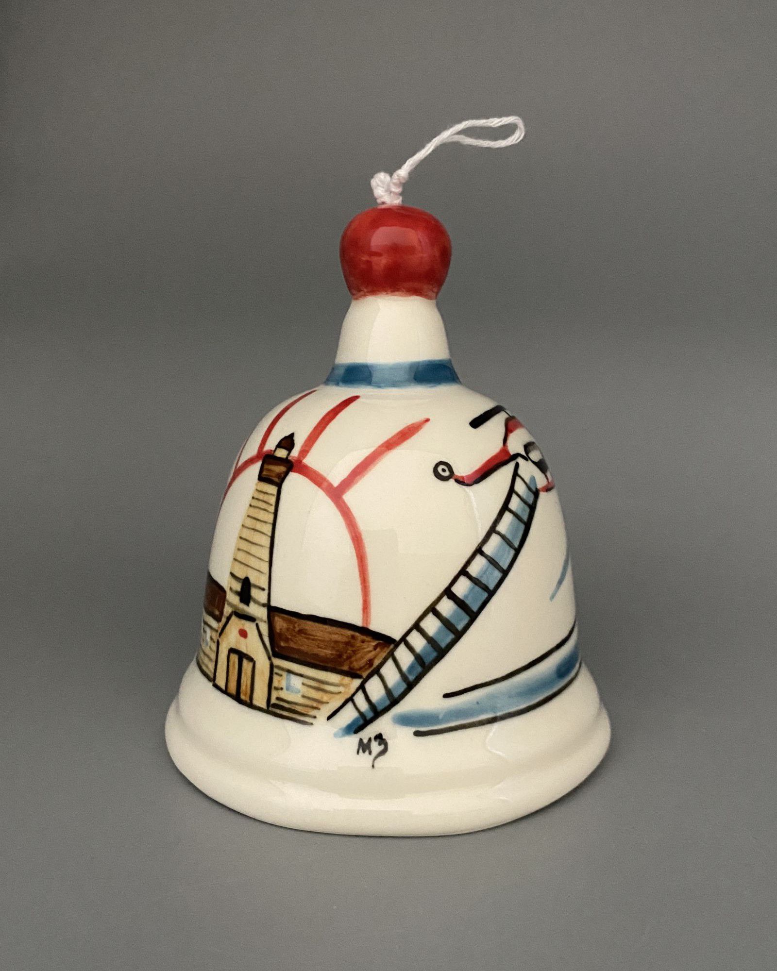 Колокольчик фарфоровый «Пожарно-технический прогресс», звенящий, подвесной, сложная роспись