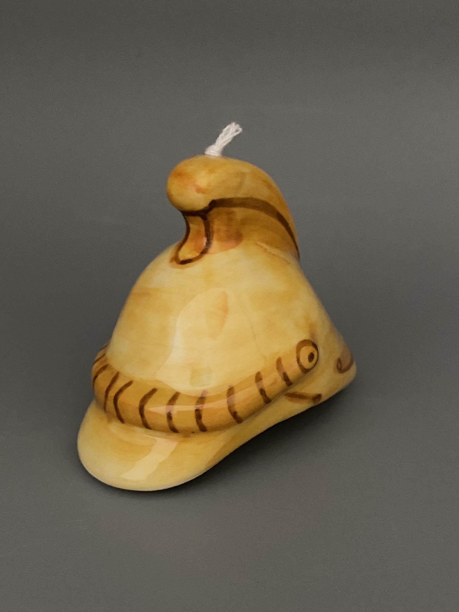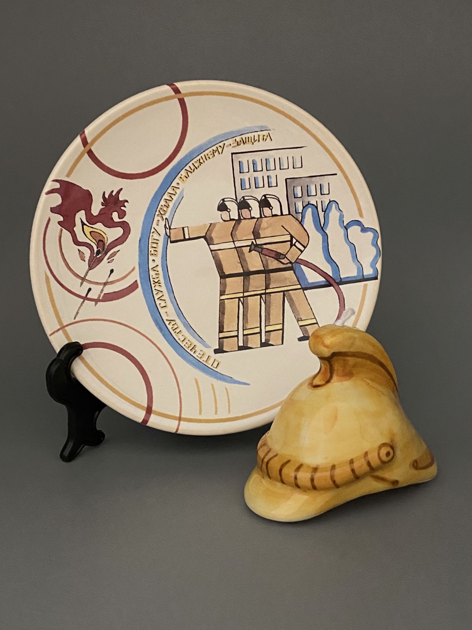 Дизайнерский колокольчик, выполненный в виде шлема пожарного - оригинальный сувенир из фарфора, памятный и символичный подарок, связанный с профессиональной деятельностью пожарных и спасателей, учебой и работой в пожарно-технических вузах МЧС.