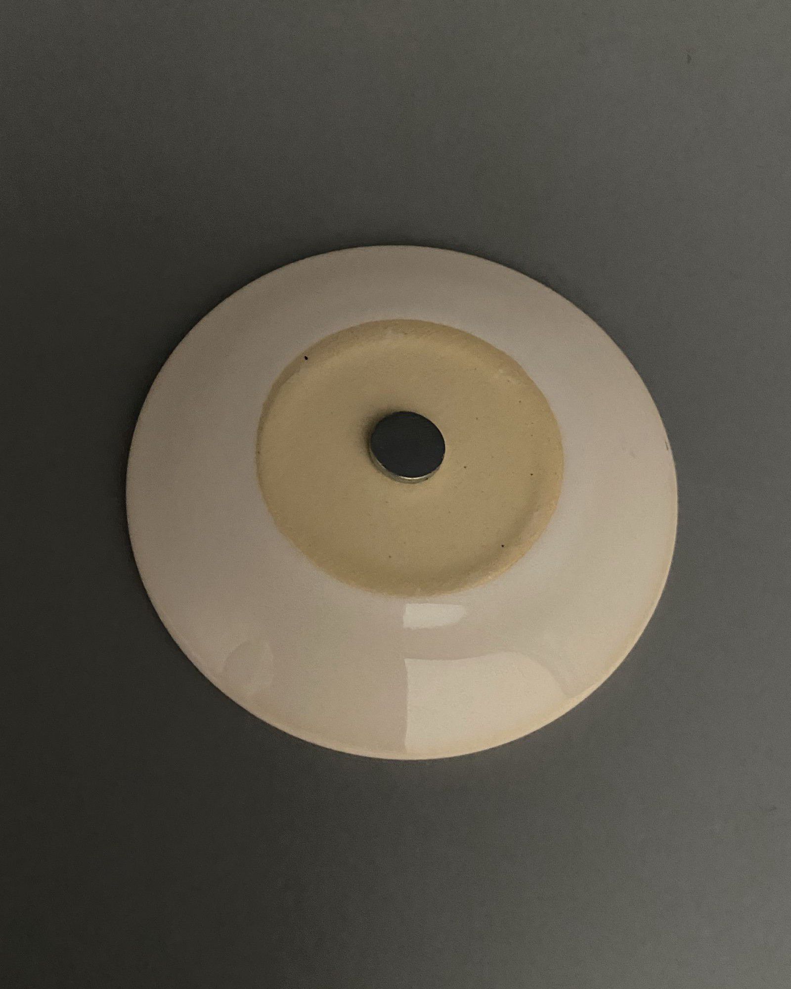 Магнит изготовлен из белой глины и имеет диаметр 7,5 см., что делает его компактным и удобным для размещения на холодильнике или любой другой металлической поверхности. Он выполнен в технике деколькомания, что придает ему яркость и насыщенность.